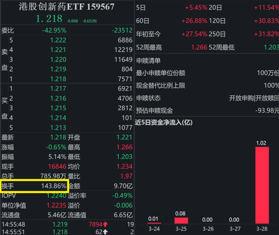 另外,3月初在《今天有两个诡异的地方》里,和大家讲过这轮港股创新药的逻辑,主要在于三块,美元降息周期的资金成本、AI医疗对研发效率的加持、以及政府对创新药政策支持的逻辑。 大家现在在公众号发消息给我,发送“创新药”,还是继续能拿到银华做的,关于创新药的科普小册子。 那天聊完后,近期银华的港股创新药ETF,159567,又涨了10多个点,换手率一直在100%以上,应该是目前港股交易活跃度最高的ETF之一了。